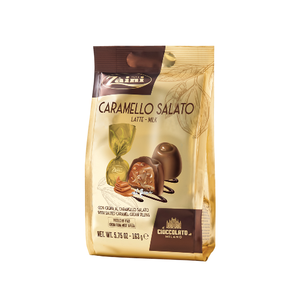 MILK CHOCOLATE PRALINES WITH SALTED CARAMEL FILLING AND CRISPY SALTED CARAMEL 163G