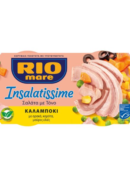 RIO MARE Insalatissime Σαλάτα με Τόνο Καλαμπόκι με Αρακά Καρότα & Μαύρες Ελιές 2x160gr